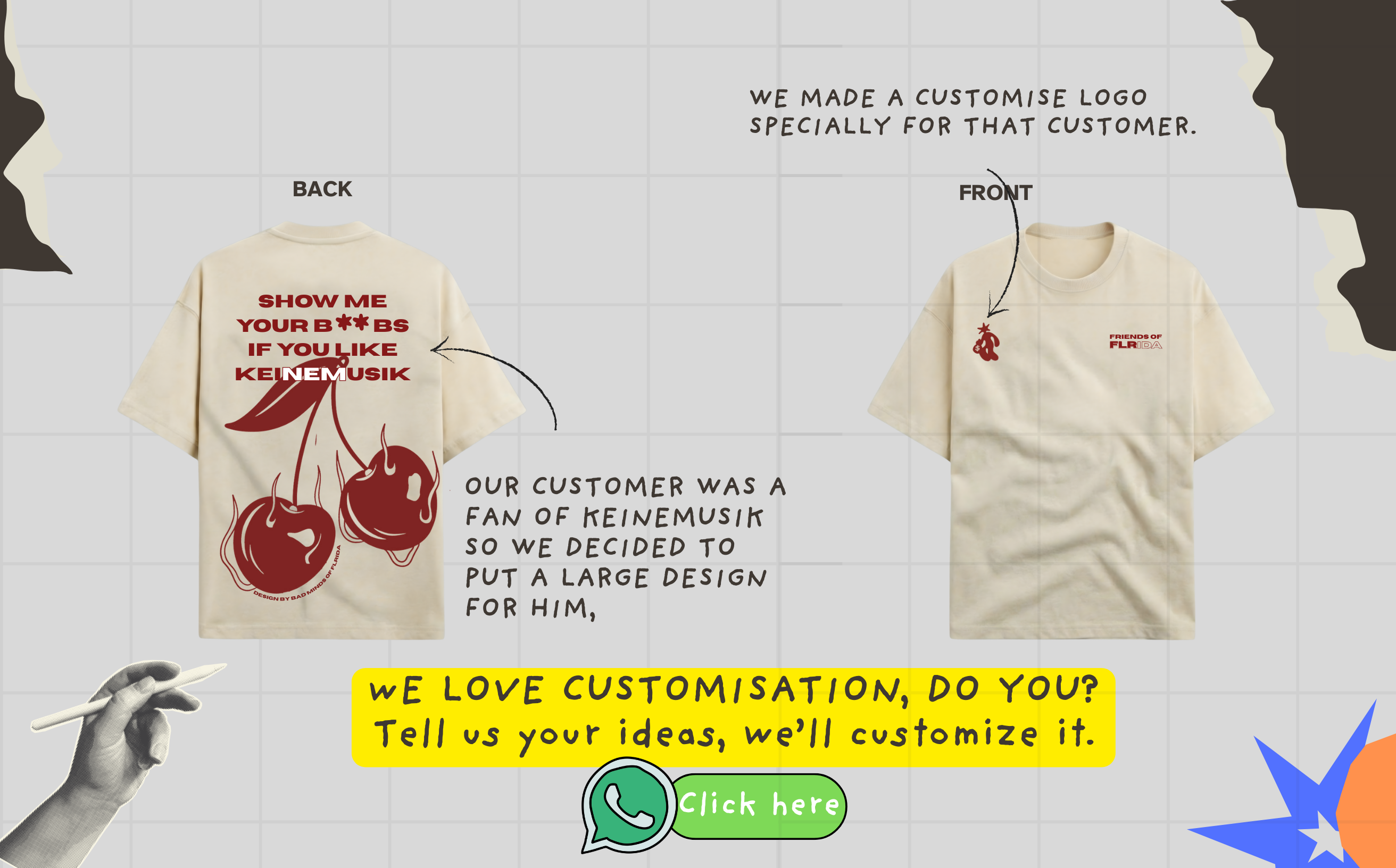 We started with bold graphic tees, but as we grew, we realized something important the most creative ideas don’t just come from brands, they come from people like you. Inspired by innovative labels like Bluorng and Jaywalking, we saw how powerful creativity can be. But at FLRIDA, we believe the next great design could be yours. That’s why we created a different concept: you bring the idea, and we turn it into a tee. Let your ideas tell a story and wear it with FLRIDA.