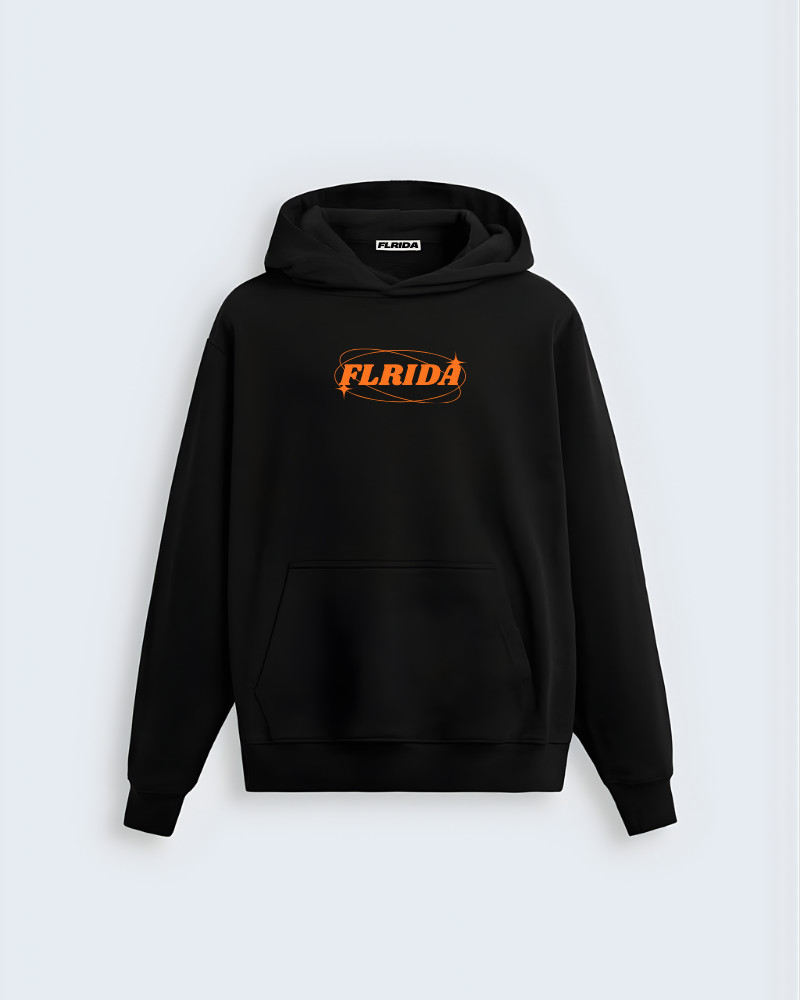 Bold, direct, and impossible to ignore. The back makes a statement with “Make Heaven Crowded” paired with a circle of figures — a symbol of unity, rebellion, and collective energy — while the front keeps it clean with a sharp FLRIDA logo hit for balance. The high-contrast orange on black adds impact without overcomplicating the message, making this hoodie feel powerful yet wearable. Built heavy with a relaxed silhouette, it’s made for those who believe movements are stronger when shared.