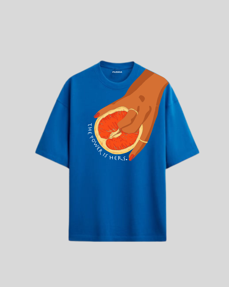The vivid royal blue base sets the stage for the striking front artwork — a fearless graphic celebrating empowerment and individuality. Designed for those who command attention without saying a word, this tee embodies strength, creativity, and self-expression.